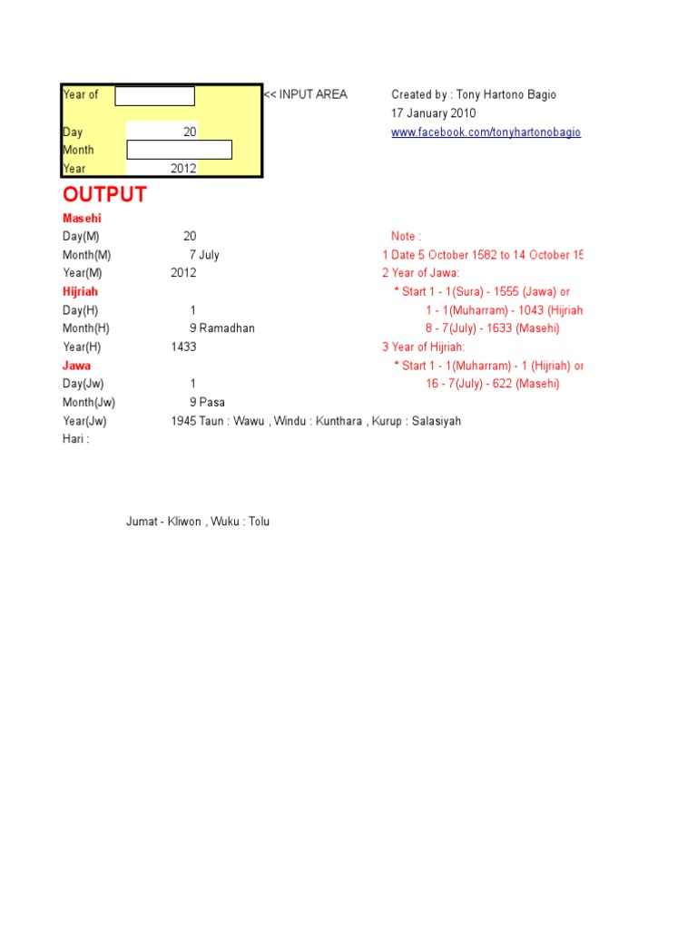 1 tahun dari tgl 16 desember 2011 ke 2012 jatuh pada tanggal berapa utk kalender jawa? Akhirnya setelah googling gw dapet juga kalender lengkap *malah terlalu lengkap menurut gw* tahun 2009 masehi & konversi ke tahun 1430 hijriah berbonus penanggalan jawa, jawa mataram, pranoto mongso jawa, 3 terakhir gw ga tau cara bacanya & fungsinya, secara gw juga orang sunda. 0 ratings0% found this document useful (0 votes). Adapun tahun jawa tidak jauh berbeda dengan hijriah dalam hal jumlah hari dan sistem penanggalannya. Di bawah ini ada kalender 2012 buatan zauji beserta penanggalan hijriyah.